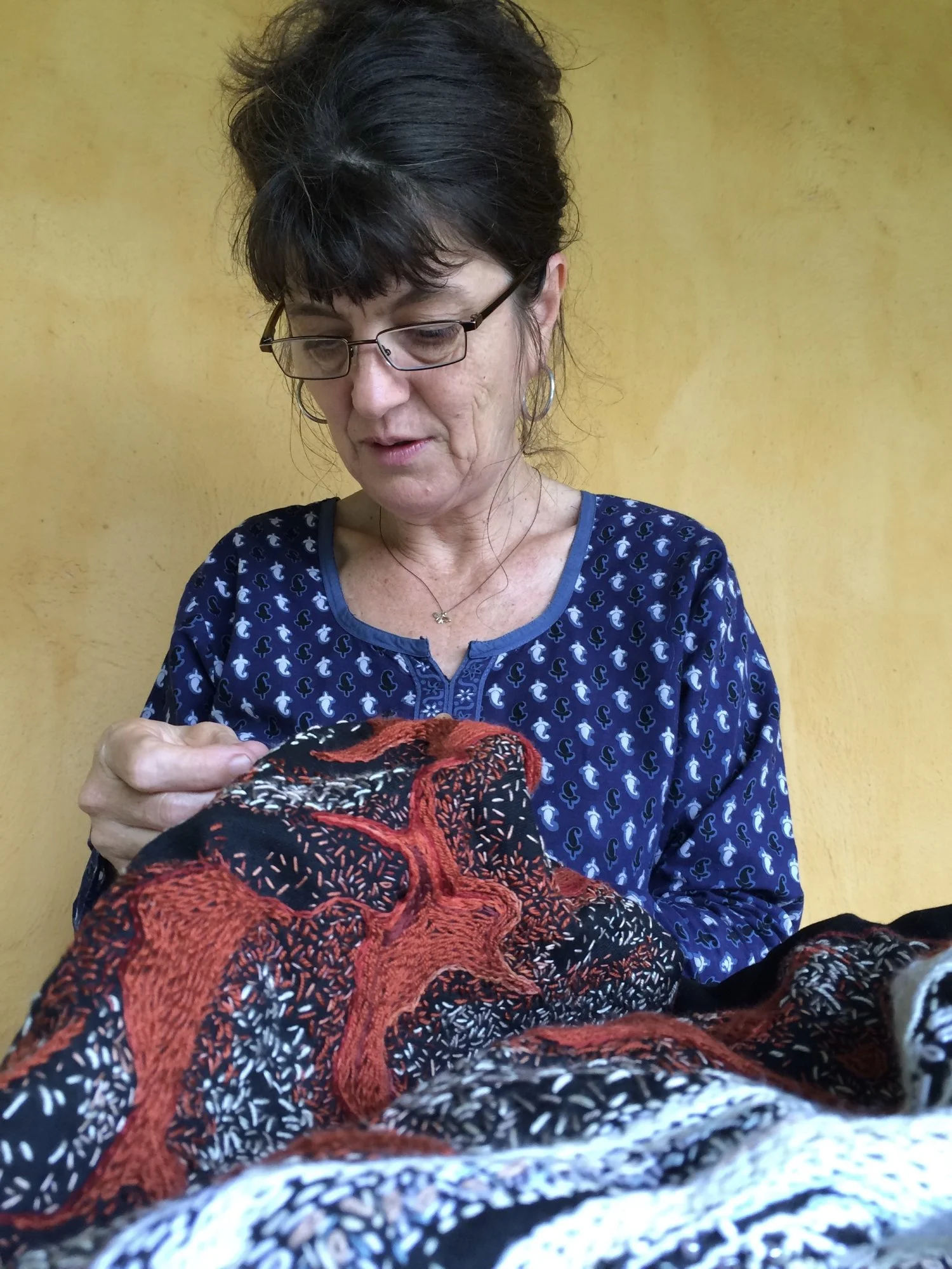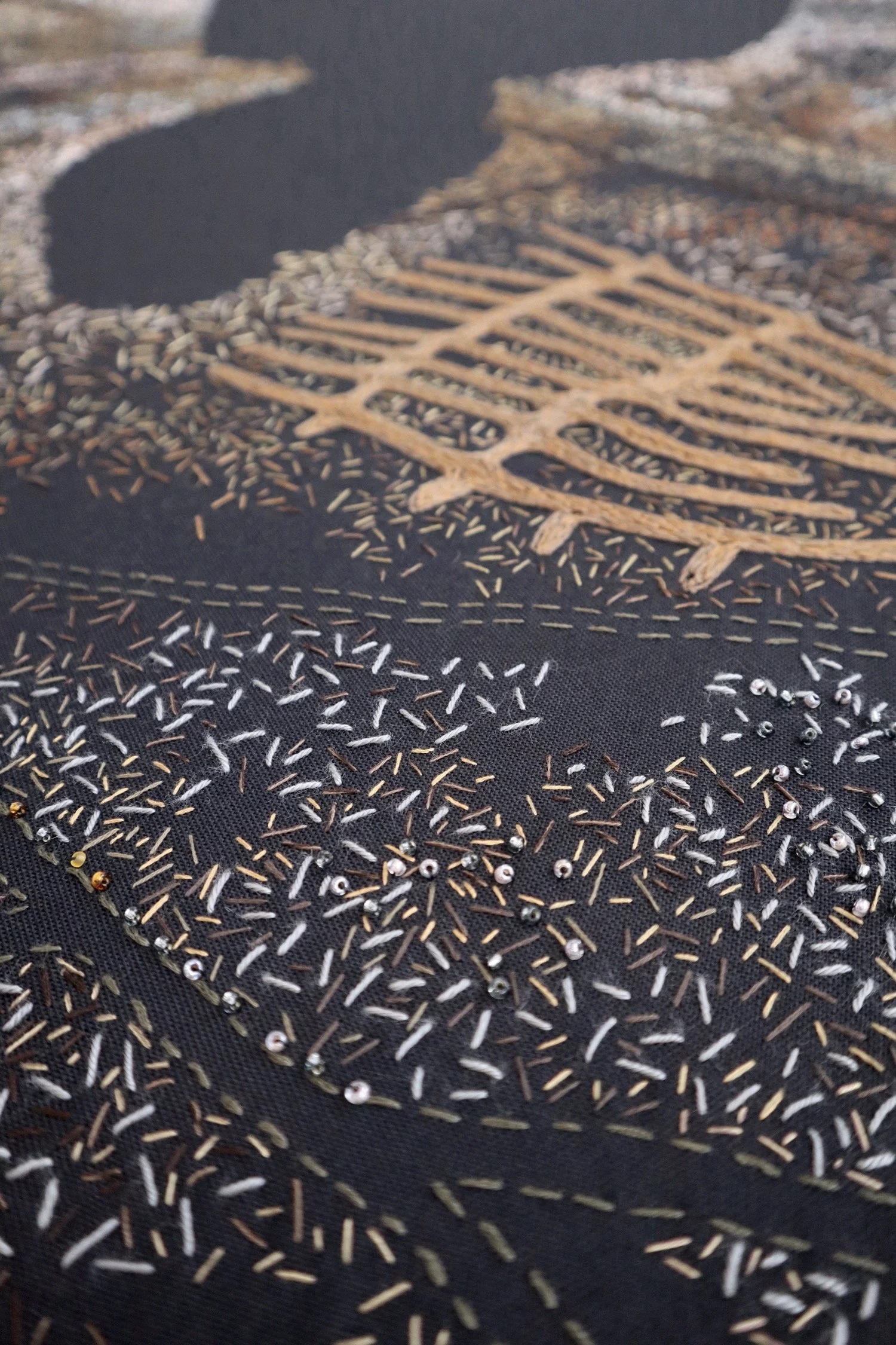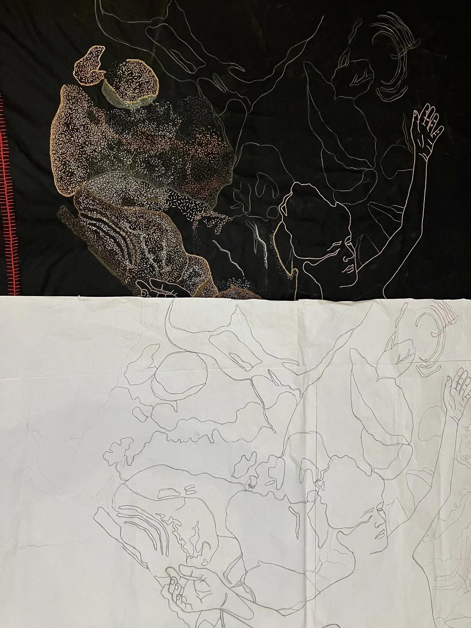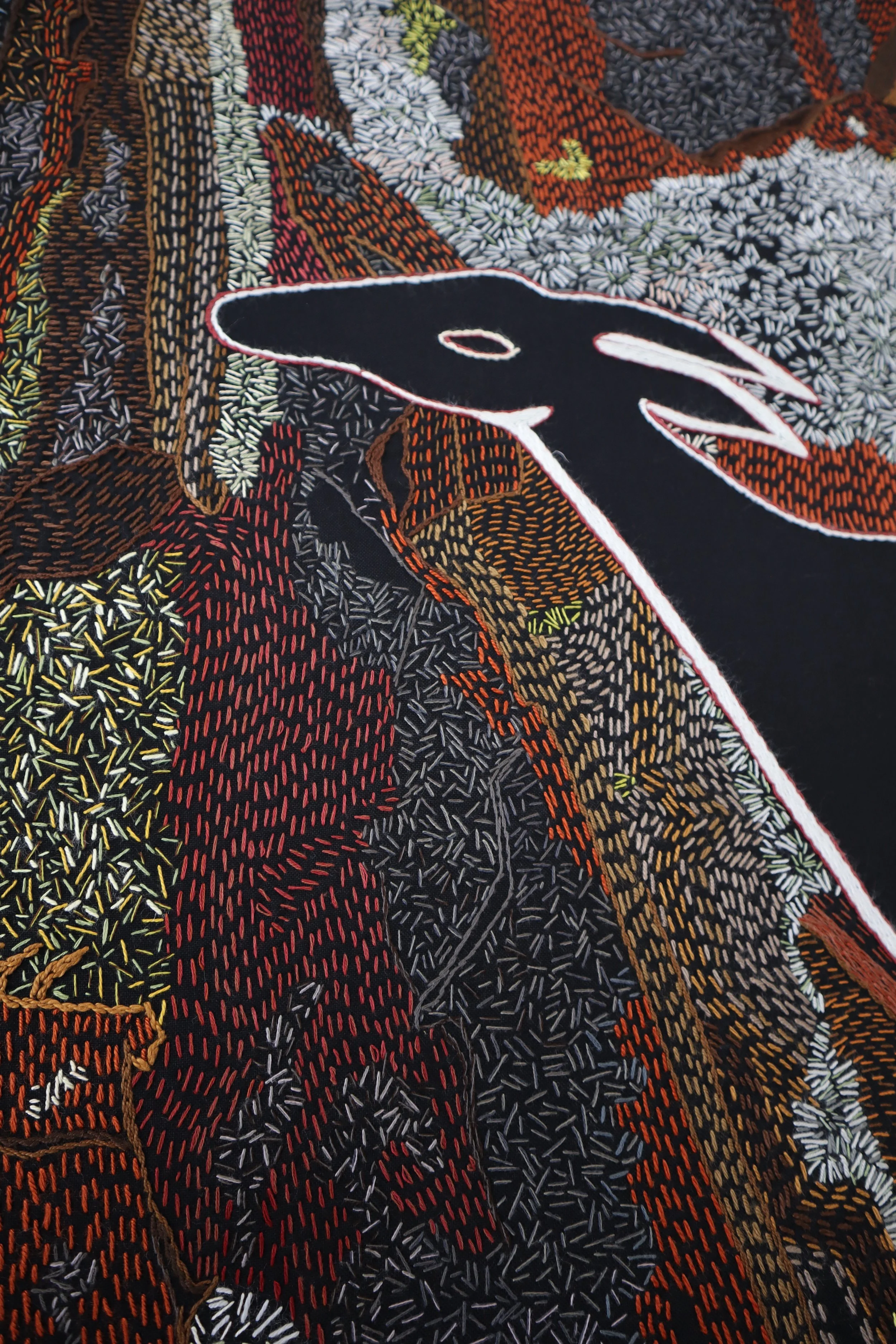 The artworks are arranged with a full image and detailed sections below it. Photographing work on black fabric is tricky; the close-up details provide a full sense of the work.