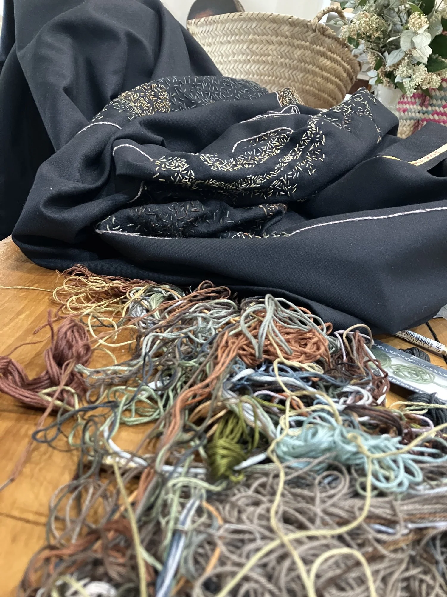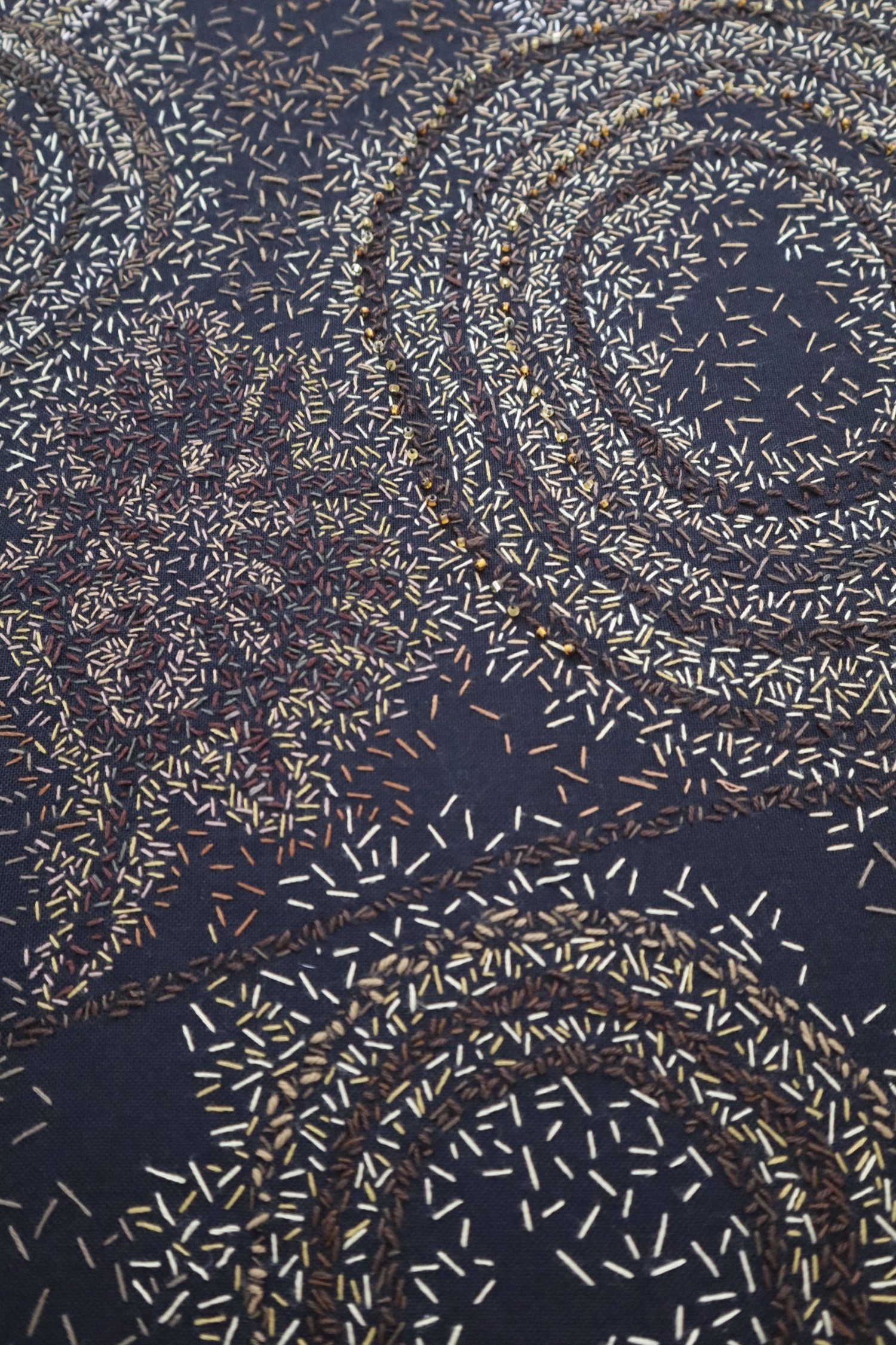 Embroidery and beads on fabric